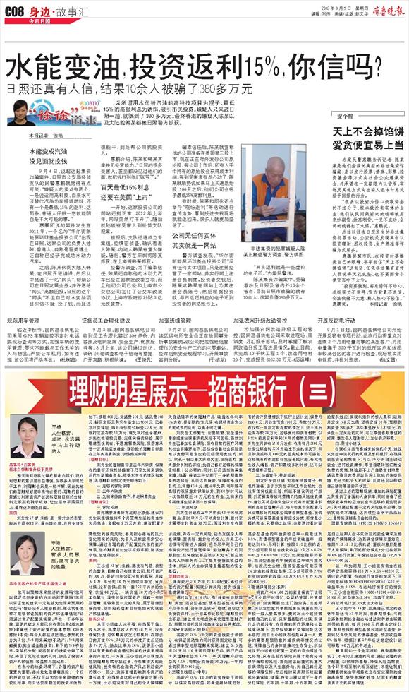 水能变油,投资返利15%,你信吗?