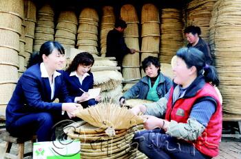 | 无棣农合行领导在李八里村详细了解柳编工艺品生产经营情况和资金需求,并向她们发放了贷款证。 |  | 无棣农合行信阳支行的工作人员来到无棣旭绿工艺品有限公司了解企业生产经营情况,为企业排解资金困难。 |