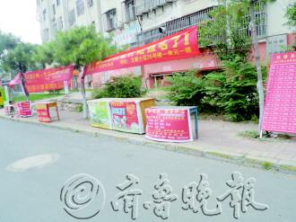 | 立新小学门口,多家“小饭桌”摆出招生简章和条幅,蓄势待发准备招生。 本报见习记者 郑雅莉 摄 |