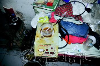 | 民警赶到时,毒贩还在熬毒呢 |