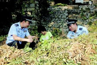 9月11日,山亭徐庄派出所民警来到辖区的葫芦套村,帮助留守儿童家庭采摘刚刚收获的鲜花生。据了解,进入秋收后山亭一些基层民警主动与留守老人、留守儿童和残疾人、孤寡老人等家庭群体结成帮扶对子,及时帮助他们收获成熟的农作物。 本报通讯员 张雷 曹莉 本报记者 袁鹏 摄影报道