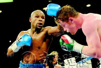 本报讯 北京时间15日,WBA超次中量级超级拳王“漂亮男孩”弗洛伊德·梅威瑟,以点数优势击败WBC、WBA超次中量级冠军苏尔·阿瓦雷兹,创造了45场全胜的神话。同时,他4150万美元的出场费,再次刷新了拳坛的纪录。 本场比赛在拉斯韦加斯的米高美大酒店进行,有12000多名热情的拳迷赶来为两位明星助阵。36岁的梅威瑟与23岁的阿瓦雷兹此前都保持不败战绩,两人的碰撞堪称今年世界职业拳坛最重大的赛事。 比赛开始后,原本以为会平分秋色的局面,很快就陷入了梅威瑟的控制当中。尽管年龄大了13岁之多,但是梅威瑟的速度无疑更占优势。他密集的防守与犀利的反击,让以凶猛顽强著称的阿瓦雷兹找不到进攻的办法,重拳优势无从发挥,梅威瑟的刺拳则频频击中对手的面门。最终梅威瑟虽然未能击倒对手获胜,但12回合过后,他还是以较大的点数优势拿下了这场比赛。