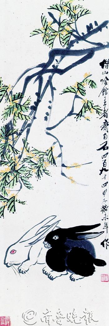 ■链接 □2011香港苏富比秋季拍卖会中,齐白石《丹桂双兔》626万港币成交;次年,北京都市联盟2012秋拍中,这幅作品以621万元落槌,加上佣金后成交价共计714.15万元。