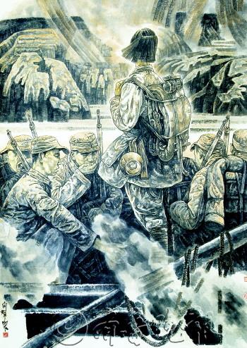 许向群创作特点分析 □许向群 1963年生,安徽肥东人。毕业于安徽师范大学艺术学院美术系,获硕士学位,现为解放军出版社副总编辑。中国美术家协会会员,中国美协理论委员会委员,解放军美术创作院艺委会委员。 作品曾参加第八届、第十届全国美术作品展览和第九届至第十二届全军美术作品展览等大型主题美术展览活动,并有多篇美术论文在《美术》等多家学术刊物发表。1995年国画《胜败之际》获中国首届体育书画大展铜奖,1997年国画《孤岛斗士》获迎接香港回归美展三等奖,2007年国画《碎影·进城》获“庆祝建军八十周年全国美展”二等奖。论文《永远的长征》获全国第六届文艺评论美术类一等奖。2008年被评为“全军文化工作先进个人”。论文《岁月壮歌》获全国第七届文艺评论美术类三等奖。出版《军旅画评》美术评论集。全军第十一届、十二届美展评委。 画家许向群是在部队里成长起来的新兴艺术家,在中国画和艺术评论方面均有建树,是一位具有深厚理论根基,又肯刻苦学习,勇于创新的艺术探索者,在军内外有很好的口碑和评价。 在当代美术界,许向群是一个复合型人才。他军人出身,有艺术院校的专业经历,在中国画创作上一向有不斐的成绩,作品曾多次参加全国和全军美展;他在部队的文化媒体任职,在传播军旅文化,创造、丰富官兵文化生活工作中尽职敬业;但在从事绘画实践和本职工作之余,他坚持研究当代军旅美术创作,把评论当做自己人生事业的组成部分,以绘画实践的经验和艺术理论的功底投入思考与写作,以深入部队美术群体的创作实际为依托,在军旅美术评论上开拓自己的学问空间,也以双管齐下的努力构筑起自己的专业世界。 在许向群的主题性人物画创作中,《红色中国》、《影像·记忆》、《谈笑赴荆棘》、《孤岛斗士》、《黄河渡》等作品是其代表作。《红色中国》表现的是人民领袖毛泽东在延安时期与军队战士在一起的画面,很带有肖像画的特点。他着力塑造出一位伟人的独特性格和与部队官兵的亲密关系,领袖的审慎神情和那深邃的目光,给人留下了难以抹去的印象。而《黄河渡》画的是一群八路军战士东渡黄河,奔赴抗日战场的动人瞬间,和青年男女战士在残酷的战争面前所表现出的内在情感。男战士所体现的是平静和思索,女战士所体现的是激情和遥想。在那烽火连天的岁月,赴汤蹈火,为国捐躯,是一代热血青年的神圣选择,即使女性也是一样。这无疑是一首饱含诗意的战斗之歌,理想之歌。它所唱响的是生命的伟大和青春的美丽。 许向群与大多数生于六十年代的画家一样,成长的记忆和环境不知不觉在他们身上留下了烙痕,他们很难摆脱沉重的意识形态情结,理性主义的思考习惯和身份认证经常自觉地在他们的生活状态和艺术作品中表现出来。这种人生境遇,使他们不可能用“玩”的心态来对待艺术,那种挥之不去的责任感始终渗透在他们的作品中。许向群对历史画的情有独钟与他这种经历和所受的教育不无关系。然而,随着信息的开放和阅历的增加,他对历史题材的理解与创作已经远远超越了他以往接受的历史常识,努力寻求人性深处的性格本源是他关注历史题材的兴趣点和关键之所在。《影像·记忆》则是一幅三联画,表现的是抗日战争时期的三个抗战人物。一个是拿着大刀的普通妇女,一个是倒在疆场的无名战士,还有一个全副武装,正在奔赴前线的敢死队员。这是一个历史场景中的普通瞬间,也是尘封已久的真实影像,当艺术家饱含深情地把他们重新唤醒时,更是令人刻骨铭心,无比震撼。 与此同时,许向群又是当今活跃在美术界一位年轻的美术评论家。他的主要评论领域为当代美术创作的发展现状,尤其关注两个方面,一个是中国美术创作整体发展研究,一个是军旅美术创作研究。当今对美术创作现象全面、系统研究者为数不多,许向群本身就是画家,从事创作研究则能发挥自己的优势。作为部队的美术评论家,部队美术创作现象、存在的问题成为他撰写论文的主体,他曾撰写了《军旅美术与时代性、多样性、创造性》(2002·3《解放军艺术学院学报》)、《军事题材美术创作在当代社会中的地位和影响》(2005·9《美术观察》)等论文。2006年许向群还撰写了一篇有关历史画创作的综述文章《永远的长征》(2006·10《美术》),得到了美术界的肯定和赞誉。 许向群为人朴实宽厚,内里却有着绵里藏针般的刚性和较真。他不出亏心之言,不写敷衍之文,不讲高蹈的套话和假话,能是处说是,非处说非,当他把美术评论当做一种责任文章来做时,一切俗世的客套都会远去,他在面对画家和作品时,像一个直言相对的“诤友”,平实的论述风格后面是犀利的思索,也因为言之切理,文笔则显得清顺晓畅,令读者通过他的文字进入异彩纷呈的军旅美术长廊,理解和认识军旅美术的当代风貌。 (东野升珍)
