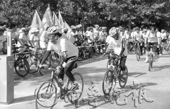| 自行车爱好者开始出发。 见习记者 蒋大伟 摄 |