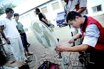 ◤居民年久失修的风扇,经维修人员一修就恢复正常了。 本报记者 李泊静 摄
