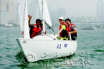 15日,在奥帆中心浮山湾海域,市民正在海面上体验帆船。据介绍,2013青岛蔚蓝海洋帆船系列赛将于10月26日至27日举行。届时,将有30余艘帆船、150余名选手前来参赛。