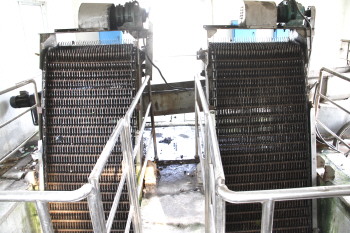 在“预处理”阶段,污水要经过格栅机的初步“筛选”,将水中的大块杂物进行拦截。