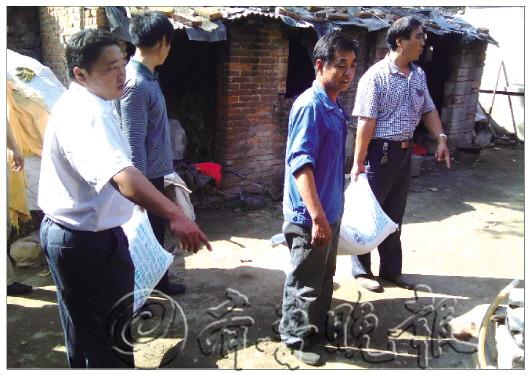 本报9月17日讯(见习记者 王浩奇) 中秋佳节将至,17日上午,莱芜市爱心车队组织爱心人士来到莱芜市钢城区艾山街道办事处纸坊村,看望他们多年来一直帮扶的困难家庭倪安德一家,并送去面粉、食用油、现金等。家里唯一的劳动力——倪安德的老伴周慎莲看着大家送来的东西不断抹眼泪,连声道感谢…… 倪安德家现有六口人,他和老伴,儿子、儿媳以及孙子和孙女。倪安德十多年前在附近的山上开采石头时被石子崩成了脑血栓,下半身已经瘫痪;儿子倪秋祥也是在开采石料时不小心从高处摔下致全身瘫痪,整天卧病在床,儿媳也已迫于压力回了娘家。日常照料倪安德和儿子倪秋祥的重担就压在了周慎莲一个人身上。 倪安德家在钢城西部的莱芜南部山区,整个村子四面环山,通往村子的路非常狭窄,只能容下一辆车。行驶了近8公里,爱心车队一行人来到倪安德家。院子里堆满了刚刚收获的玉米,屋子里非常黑暗,有一股特别浓的潮湿味道。倪安德在西堂屋里,记者进屋时,他已经坐在了床上,看到爱心人士来到家里,65岁的倪安德显得非常激动,但因为病情的原因说不出话来。倪秋祥则躺在东堂屋的床上,身上盖着一条毛巾被,头朝里,好像不太适应这么多人来到床边。记者和爱心人士来到倪安德家里时,周慎莲正在玉米地里干活,听说爱心车队的人来了,马上赶回了家。“我一大早伺候他爷俩吃完饭后就去给村里打扫卫生了,打扫完卫生后一看还不到午饭时间就又到玉米地里掰了两袋子玉米。”周慎莲告诉记者,村里为了照顾他们家就给她安排了给村里打扫卫生的活,每天都去打扫,一个月能发给400多元钱。 家庭走到今天这个地步,周慎莲每天都非常着急,就在几天前家里来了几个自称是看风水的妇女,利用周慎莲急于改变家庭状况的心理,用废弃报纸偷梁换柱骗走了周慎莲刚刚卖玉米得来的1200元钱,这使得倪安德一家的生活更加窘迫。 爱心车队负责人吴修生说,他们每年春节、中秋都会来看望这个困难家庭,他们已经坚持了六年的时间。“中秋节就要到了,我们来看看他们家的情况是不是好些了。也希望更多的社会爱心人士能给予这个困难家庭更多的关爱。”吴修生说。随爱心车队一同前往的还有钢城区交通运输局的工作人员,以及每次都主动参与爱心活动的爱心人士付莲和吴钦国。“我是有一次乘坐爱心车队的出租车时从司机那里得知这户困难家庭情况的,之后我每年都会主动参与,希望有更多人能加入到我们的行列。”莱钢职工付莲说。