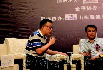 中国建筑卫生陶瓷协会副秘书长尹虹(左)在论坛上发表自己的观点。 本报见习记者 罗旭君 摄