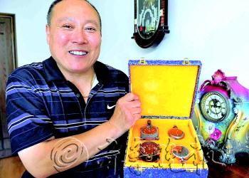 | 刘荣跃展示他收藏的四块日本空军怀表。 本报记者 邱志强 摄 |  | 四块怀表正反面展示。