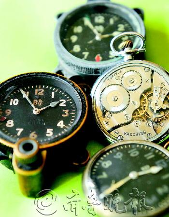 四块怀表: 为日本空军所用,成罪行见证 同样愿意拿出珍藏文物参加展览的,还有济南市民刘荣跃,18日上午,这位收藏钟表数十年的收藏家向记者展示了他珍藏的4块日本空军怀表。 其中两块表,形制很少见。表身由青铜制成,夜光表针,表盘中间有“飛行時計”四字,表身侧面刻有“精工舍”和编号。与普通怀表最大的不同在于表身四端各有一个突出的孔。即使是对鉴表有着丰富经验的刘荣跃,刚开始也猜不透这几个孔的作用。 直到不久前在网上看到了一组日本空军的老照片,刘荣跃才豁然开朗。原来,“精工舍”是当年日本制造军表的著名品牌,而这两块表是要用绳索穿过4个孔后,系在飞行员降落伞背带上,方便跳伞后看时间,这也是日军侵华罪行的见证。 “这几块表本身并不值钱,从文物上说却是无价的,很多人想出高价收买,我都不卖。”刘荣跃说,他愿意把它们拿出来参加展览。