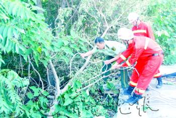 | 消防主动上门,将树枝拽下解险情 | |