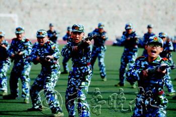 | 铁血男儿表演刺杀操。
