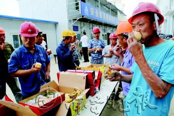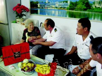 | 不能回家与亲人团聚,工人们只能在工地上过中秋。 本报通讯员 詹海林 李桢 本报记者 赵波 摄影报道 |  | 独居老人收到节日祝福。