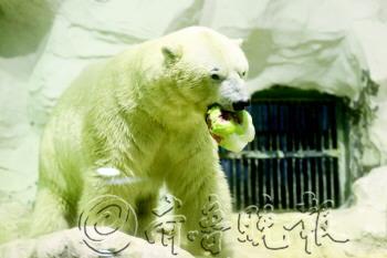 本报记者 李珍梅 摄影报道 |  | 一只北极熊在品尝用奶冰和西瓜做成的“月饼”。