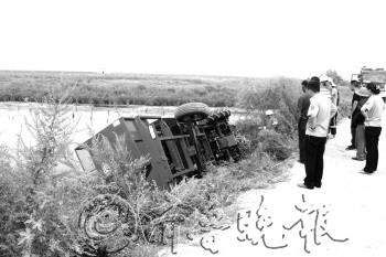 | 操作失误,收割机翻下斜坡 |