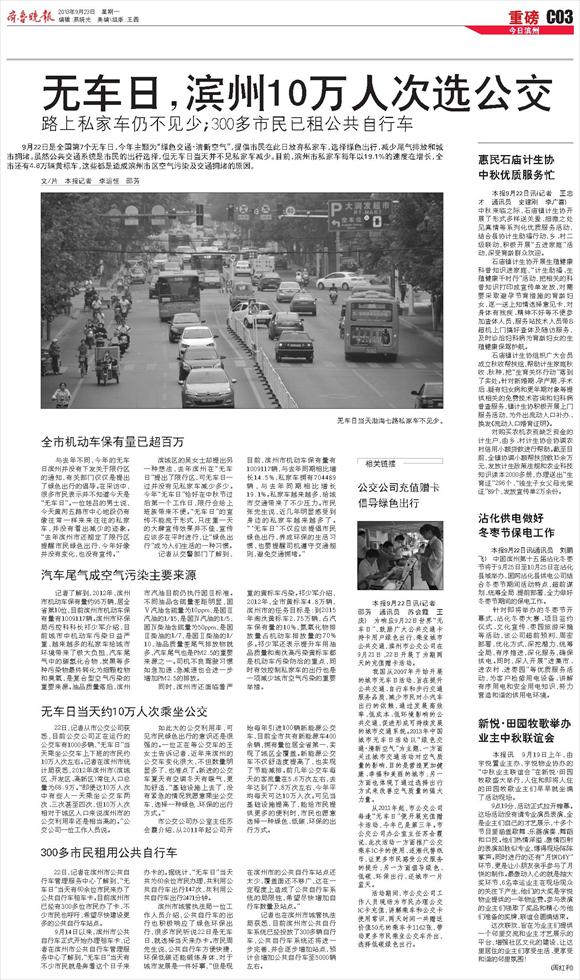 无车日,滨州10万人次选公交