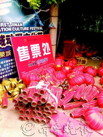 | 首届泉城动物狂欢节售票处的牌子被遗弃在角落。