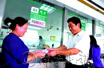 23日上午9点多,长岛旅游服务中心职工柳广虎(右)在长岛邮政储蓄银行门前拾到一张5万元定期存款单,“谁丢了存款单?”柳广虎喊了几声没人应。看到存款单是长岛农村信用合作社开户行,柳广虎驱车来到营业厅,亲手将5万元存单交还给失主,并回绝了失主的现金答谢。