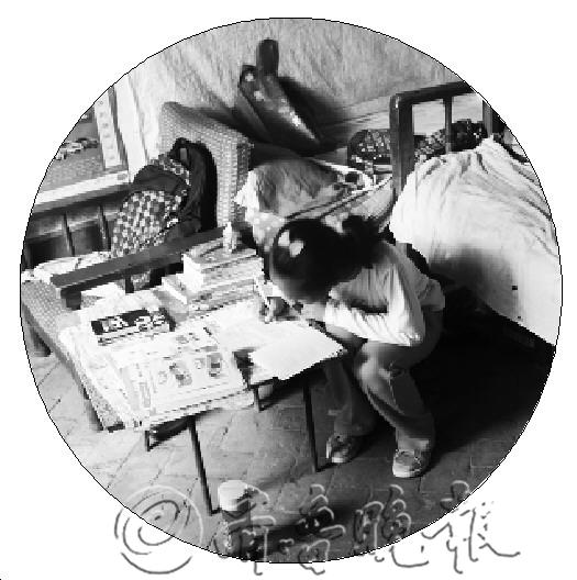 ▲王翠云提起儿子忍不住痛哭。 ◤刘建芝的孙女正在写作业。