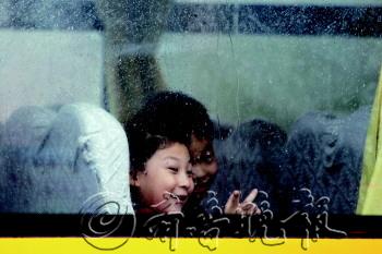 23日17时58分,一辆校车上的两位小朋友看着车外,窃窃私语,为秋日增添了几分温情。当日正值秋分,淄博市区降下一场秋雨,今日最低温降至15℃。近期气温变化较大,市民应注意增减衣物。 本报记者 王鑫 摄影报道