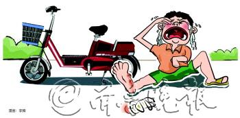 电动车后轮“咬”伤男孩右脚消防部门建议加装个防护网