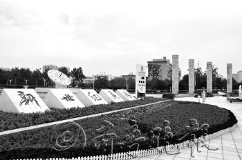 | 新世纪广场前的花卉造型简洁大方。 公素云 摄 |