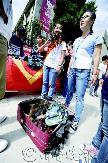| 军训结束后,鲁东大学三社团发动新生捐出迷彩服送给农民工 | |