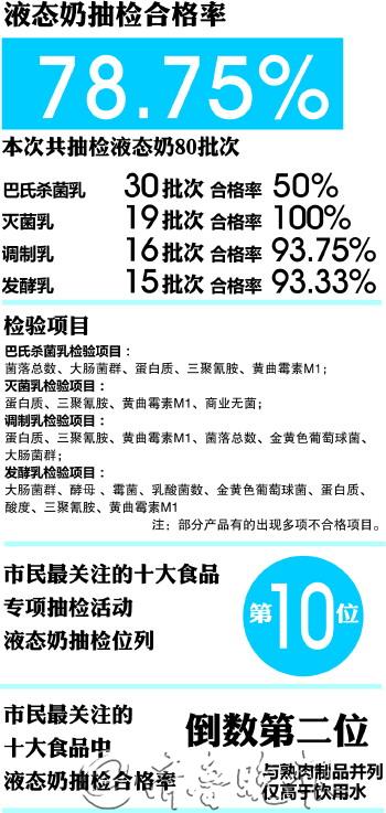 | 抽检液态奶,合格率仅78.75% |