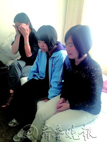 | ◥王晓伟被害后,妻子赵敏(右)和女儿(中)一直在宾馆等待事情处理。