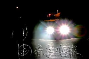 | 刺眼的远光灯让人看不清路况,容易发生交通事故。 |
