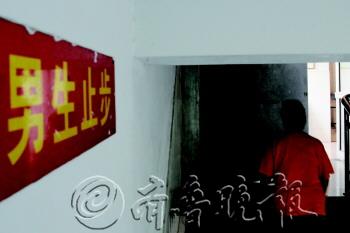 张店区十七中女生宿舍门前挂着“男生止步”的标牌。近来,各地发生的儿童性侵事件引起社会广泛关注,教育部、公安部等四部门发布关于做好预防少年儿童遭受性侵工作的意见,要求中小学女生宿舍要全部实行封闭式管理。 本报记者 姜文洁 摄影报道