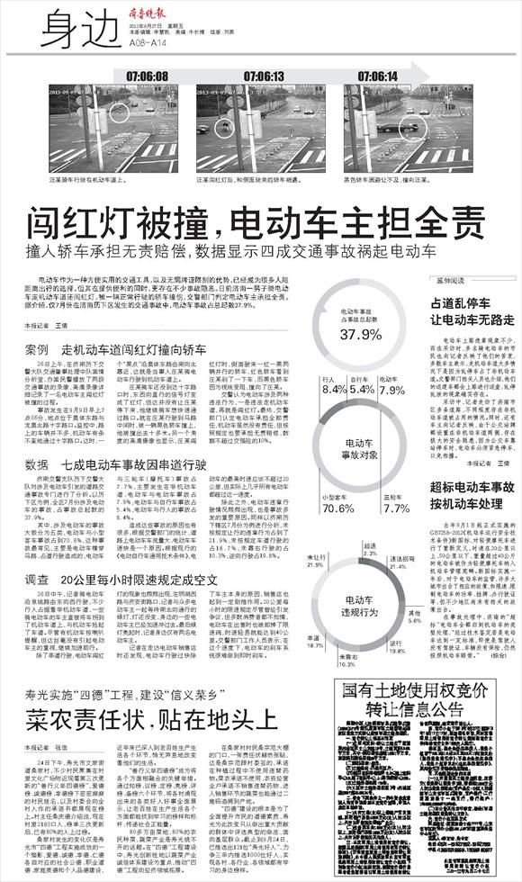 闯红灯被撞,电动车主担全责