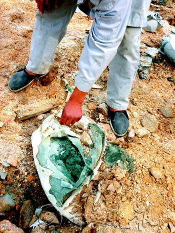 | 27日,在处理中心,村民发现一些处理不彻底的固体废弃物。 本报记者 王伟平 曲彦霖 摄 |