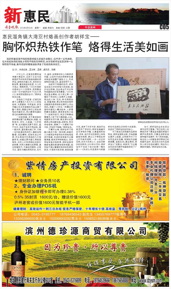 胸怀炽热铁作笔 烙得生活美如画
