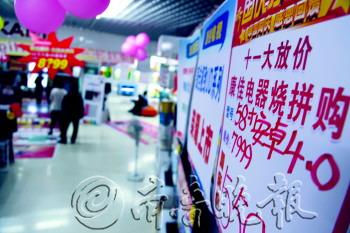 | 家电卖场促销宣传很高调。 本报记者 马辉 摄 |
