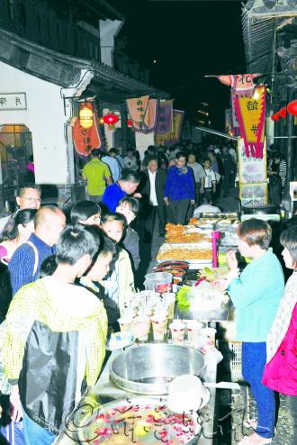 10月1日至7日,台儿庄古城举行了乾隆下江南水上巡游实景演出、磐鼓表演、篝火晚会等一系列活动。除了享受文化饕殄盛宴,古城里的美食也让游客流连忘返。花花绿绿的招幌随风摆动,各种吆喝声此起彼伏,整个街市飘荡着诱人的美食香味。来自五湖四海的游客云集于此,品尝着本地特色美食。 本报记者 白雪岩 本报通讯员 谢美慈 张严新 摄影报道