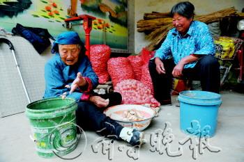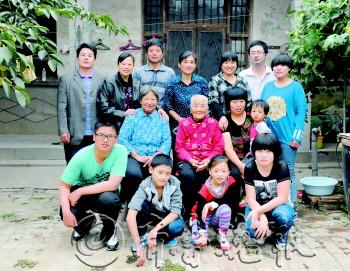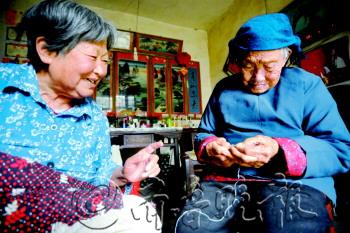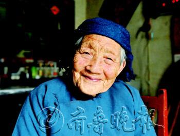 | 70岁的儿媳得了白内障,做针线活时还得让老太太帮着穿针。 |  | 百岁老人四世同堂,一家人其乐融融。 |  | ◤老人经常在院子里溜达,活动筋骨。 |  | ▲老人慈眉善目,笑容常挂脸上,如果说她80岁,也有人信。 |  | ▲老人和儿媳一起扒蒜头,干活一点也不含糊。 |