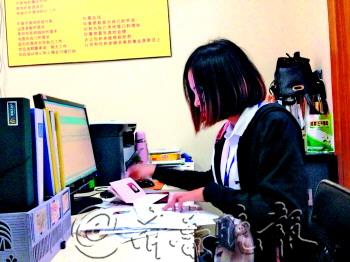 | ◥8日,孚瑞不动产万达广场店内,工作人员在为购房者办理网签业务。