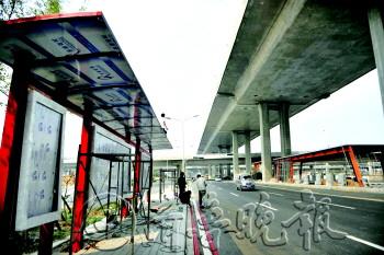 | 8日,在二环西路崭新的公交站台和BRT站台正在紧张施工。 本报记者 王媛 摄 |