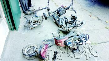 本报记者 路帅 摄 |  | 路边被撞烂的电动车。
