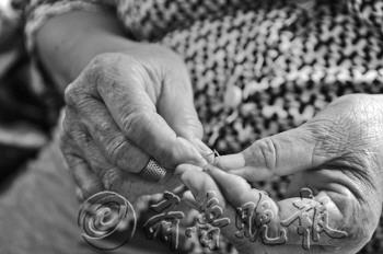 | ◤老人年龄大了,纫针常常要花很长时间才行。 本报记者 李泊静 摄 |  | ▲老人会做各式各样的虎头鞋。 本报记者 李泊静 摄 |