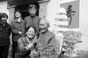 本报10月13日讯(记者 孙婷婷) “我100岁了!”在德城区天衢街道办事处前小屯村,精神矍铄的百岁老人安胜兰说。13日,恰逢九九重阳节,家人和乡亲邻里为百岁老人祝寿。 据了解,安胜兰老人1914年出生,育有五女一男,最大的女儿已去世多年,最小的女儿今年也有61岁。目前,老人和儿子杨连喜一家生活在一起。“有耐心、脾气好、有爱心、很勤劳”,说起百岁老人安胜兰,儿女和乡亲邻里,有说不完地夸赞。 13日,老人一大早起床收拾,戴上孙女给买的手镯,穿上外甥女给买的大红色针织衫。院子里摆放着订做的七层大蛋糕,屋门外墙上挂着一个大大的“寿”字,老人坐在院里晒着太阳,并接待每位来为她祝寿的人。 “俺不挑食,什么都爱吃,以前村里有娶亲吃酒席时,别人都不爱吃的肥肉,我捡起来就吃了,吃着香啊。”安胜兰调侃着,虽然现在年龄大了,但饭量也没减,一碗米饭、一碗水饺都不在话下。在儿媳妇看来,婆婆现在身体好,饭量好,都是她的福分。 已经100岁的安胜兰,身体很好,眼不花耳不聋,腰腿不疼,自己拄着拐棍走路不用人扶。老人说,自年轻开始练就了一副好身板。早上7点起床,安胜兰会将自己的被褥全部叠放整齐,洗漱完毕后,等待儿媳做早饭,吃完早饭后,拄着拐棍到家前面的小广场上溜达,哪里热闹哪里人多,就会成为安胜兰溜达的首选之地。晚上8点,吃完晚饭后,安胜兰准时上床休息。 “谢谢你啊。”这是安胜兰一直挂在嘴边的一句话。跟其他老人一样,安胜兰盼着跟前有人跟她说说话,所以每一位跟她聊天的人,她都要谢谢人家。如今,安胜兰已经五世同堂,玄孙已经25岁。