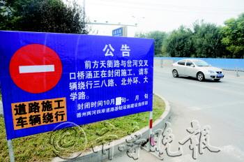| 天衢路岔河桥实施封闭。 本报记者 马志勇 王小会 摄影报道 |