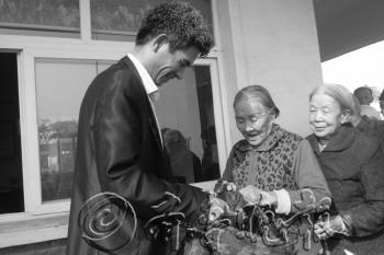 10月13日,泓瑞集团子公司泓瑞帝豪4S店、滨州影视城、秦皇台人文园全体员工来到秦皇台敬老院、滨北办事处敬老院为孤寡老人送去节日问候,董事长李晓伟亲手将棉衣送到老人手中。这是泓瑞集团2006年进入滨州市场以来,连续8年关爱滨州老年人的善举。