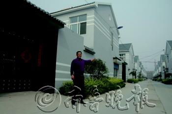 | 俎先泉身后就是整齐划一的“小别墅”。 |