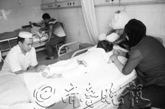 文/片 本报记者 白雪岩 10月4日晚11点,四岁女孩马玉花和往常一样在父母开办的清真拉面馆一边玩耍,一边等待着店铺打烊,然而这一天对她而言可谓厄运难挡,她在厨房玩的时候不慎跌入滚烫的热水盆中。目前,女孩已经脱离生命危险,但她全身有65%的皮肤被严重烫伤。然而除了这样的痛心噩耗外,孩子的父母眼下还面临着非常棘手的一个问题,那就是后续六七万元的医药费。 母亲厨房洗碗 孩子一屁股坐进热水盆 10月12日,记者来到医院探望马玉花,只见她趴在病床上吮吸着酸奶,俊俏的脸庞紧贴在床上却显得无精打采。女孩从后背一直到脚跟全都缠着绷带,身体稍微动一下,就发出撕心裂肺的哭喊声。女孩为何会伤成这样,她的父母向记者讲述了事发的经过。 10月4日晚上11点钟,马玉花和往常一样在父母开办的拉面馆玩耍,父亲正在餐厅招待客人,母亲在厨房洗碗。“不知什么时候她跑到厨房来了,就在我身后玩,地上放了一盆刚烧开的热水,是准备用来烫餐具的,她玩着玩着不知怎么一屁股坐进了桶里,当时吓了我一大跳,她爸爸马上跑过来把她抱了起来。”提到事发时的情景,女孩的母亲仍心有余悸。 “我把她抱起来后,赶紧给她脱掉衣服,那时孩子后背已经脱落了一层皮。”说到这,孩子的父亲懊悔不已,“每天洗过碗,我们都得烧开一锅热水烫餐具,她平时都是在餐厅玩,很少到厨房去,唉!都是我们太粗心大意了!” 枣庄市市立医院烧伤整形科医生王钰表示,孩子刚来的时候处于休克状态,随时都有生命危险,医生首先采取的是保命措施。目前孩子已脱离生命危险,但创面很大,全身65%的皮肤被烫伤,程度深浅不一,有深二度、也有浅二度。 时隔三天 女孩姑姑又遭烫伤 然而就在事发三天后女孩的姑姑马克素梅同样也在另一家由女孩的姑姑和姑父经营的拉面馆里被烫伤。 “我当时一不小心踩滑了,摔倒的过程中拉了一下汤锅把,汤锅就倒了下来,我当时躺在地上,汤锅里的水洒到地上就把我后背烫伤了。”马克素梅回忆当时的情景说。 “幸好锅是从一旁倒下来的,否则后果不堪设想,因为她已经怀有两个月的身孕了。”马克素梅的丈夫马木汗卖说,妻子的伤势比马玉花要轻一点,胎儿也没有受到太大影响。 突然其来的两场灾难让这一大家人陷入了深深的困境。马玉花的父亲马四么来说,四个月前,她经妹妹介绍,从青海老家举家带着十多万元来枣庄盘下位于市中区枣矿医院附近的清真拉面馆,面馆开张的第二个月,就赶上附近道路大维修。现在孩子又出了这事,家里仅有的两万元钱全交了药费。 “医生说,后续药费还需要至少五六万,本来还打算跟妹妹、妹夫借一点,可她也出了这样的事,现在真是没办法了。”马四么来无奈地说,他们一家人在枣庄这里也没有亲人、朋友,可以说真是走投无路了。 “我们两个人也是前几年投了十五万在这里盘了一家清真拉面馆,做到现在日子刚刚好过一点,没想到出了这样的事。”马克素梅的丈夫说,妻子的药费已经花去近一万元了,后续还需要两万多,两人目前的积蓄刚够给妻子治病的。以后如果再出现什么并发症,可就不好办了。