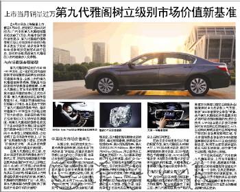 上市当月销量过万第九代雅阁树立级别市场价值新基准 自9月12日在上海隆重上市,截至9月30日,在短短不到20天时间内,广汽本田第九代雅阁销量已经突破了1万台。终端市场反馈的信息显示,第九代雅阁的强势表现已经让中高级车市场的价格体系发生了变动,诸多竞争车型纷纷采取降价促销形式进行狙击,级别市场格局因第九代雅阁的入市而逐渐步入变革期。 与市场最强者硬碰硬 第九代雅阁市场定价为20.68-29.88万元,这一定价区间与当前级别市场销量排名前两位的德系双雄基本相当。全新上市的第九代雅阁目标很明确,那就是与当前级别市场最强者硬碰硬。从第九代雅阁上市当月的表现来看,其与德系双雄的竞争已正式拉开序幕:第九代雅阁目前主销车型排量为2.4L,与德系双雄当前的主打排量1.8T相当。也正是由于受到了第九代雅阁的强势冲击,德系双雄旗下1.8T车型本月价格出现了较大的波动,目前在终端市场已经有接近2万元的市场优惠幅度。而第九代雅阁的强势也改变了日系中高级车长期以来主销车型只能集中在22万元以下价格区间/2.0L车型上的尴尬局面。这也证明了在中高级车市场上,以“出身”论英雄绝对是个谬论,正所谓“价值决定价格”,真正决定消费者是否出手的只能是价值因素。 在第九代雅阁上市之前,日系中高级车的另外两强也进行了换代上市,但却无法撼动德系双雄在更具含金量的22万元以上价格区间/2.4L(或1.8T)车型上的优势地位。综其原因,是这两款车型尚无法真正在此价格/排量区间上为消费者提供更为有效的价值。而第九代雅阁则无疑做到了这一点,那么第九代雅阁都为消费者提供了哪些优于竞争对手的价值呢? 中高级车市场价值典范 长期以来,本田的技术实力一直为消费者所称道,因此也有“技术的本田”的说法。在德系竞争对手赖以成名的动力系统方面,本田近年来倾力打造的Earth Dreams Technology(地球梦科技)动力总成技术完全可以与其进行抗衡!以第九代雅阁当前主销排量搭载的2.4L i-VTEC直喷发动机为例,其荣膺了2013年度Ward’s十佳发动机称号的。其采用了Honda独创的VTEC可变气门升程系统+VTC可变气门正时技术,以及全新缸内直喷系统,在大幅度提高燃油效率的同时,通过降低摩擦,使燃油经济性提高13%,最大扭矩提高8%,最大功率达137KW/6400rpm,最大扭矩为243Nm/3900rpm,百公里综合工况油耗更低至7.7L。与之匹配的智能CVT无级变速器,通过“G-Design Shift”控制技术实现极佳的油门响应,带来爽快且动力十足的驾驶感受。而相关调查结果显示:随着本田新车的密集入市,中国消费者对Earth Dreams Technology(地球梦科技)动力总成技术的理解程度已经大大加强。在此方面,德系竞争对手已经无法在第九代雅阁身上占到任何便宜。 而在日系中高级车引以为豪的配置方面,第九代雅阁以LED前大灯、LWC盲点显示系统、航空双屏智能娱乐显示系统、ECON智能绿色节能辅助系统、ANC主动降噪系统、ESS紧急刹车警示系统等等创新的科技配置,大幅增加了车辆的价值,完胜德系竞争车型。 力创安全领域全新纪录 当前中高级车消费者购车时所考虑的排名靠前的因素除了动力和配置外,安全性能排在了第三位。第九代雅阁在最为严格的美国IIHS(美国公路安全保险协会)碰撞测试中力压多款人气车型,斩获“2013年度最安全车型”荣誉。此外第九代雅阁还率先搭载本田多项可有效预防碰撞的先进安全技术:LWC盲点显示系统可在转向时有效监测右后视镜盲区;ACL主动转向照明系统可在黑暗环境下转向时自动照亮转弯区域;专为中国消费者装备的CMBS碰撞缓解制动系统和ACC主动巡航控制系统,利用车头部安装的雷达感应与前车的距离,进行调节并主动预警,提供安心保障。 对于志向高远的广汽本田第九代雅阁来说,上市当月销量过万只是一个开始;超越德系双雄,重登级别市场销量冠军宝座也不过只是一个目标;它真正要做的,是树立级别市场价值新基准,为中高级车消费者提供真正有效的价值!这才是驰骋中国车市15年,在中国已拥有150万名车主的雅阁品牌的真正使命。 SEF(Siri Eyes Free)安全便捷语音控制系统 大屏一手精准控制 智能CVT无级变速器