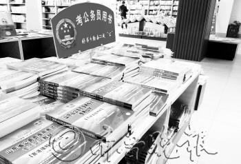 | 在书店,公务员考试用书被摆放在显眼的位置。本报记者 李岩松 |